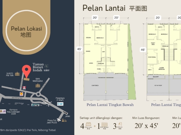 Taman Bistari Indah offers quality double-storey terrace homes in Nibong Tebal, designed for practical and modern family living. These homes feature spacious layouts, contemporary finishes, and a comfortable environment suited for growing families. Strategically located with easy access to schools, shops, and main roads, Taman Bistari Indah combines convenience with value, making it an ideal choice for first-time homeowners or those looking to upgrade in a well-connected neighborhood.